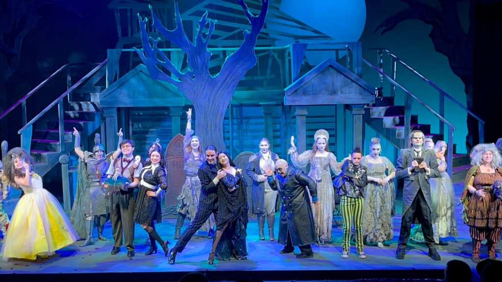 Gerald King’s lighting design established a spooky atmosphere that matches the show’s dark humor and haunting melodies.